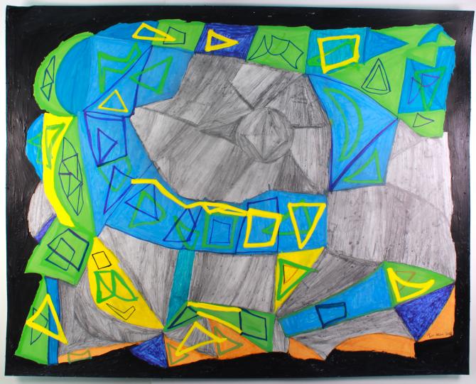 Tim Stone, Shambula, 2015, Pencil, paint marker on paper, 19”x24”